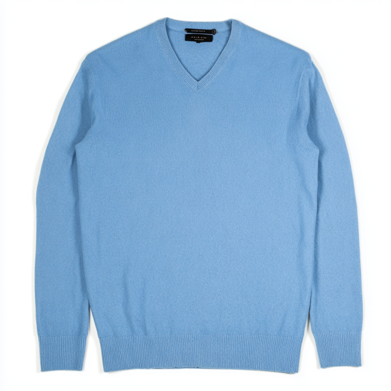 Experience unmatched comfort with this beautifully soft powder blue sweater from Black Brown 1826. Made of 100% cashmere, this lightweight, long-sleeved V-neck sweater ensures warmth without bulk. Featuring ribbed cuffs, neckline, and hem for added durability and style, it’s designed for men in size L. A small pinhole at the back adds character, making this piece unique yet wearable for any occasion.