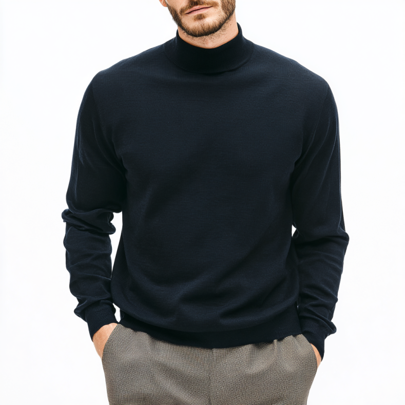 Stay cozy and stylish with this Black Brown 1826 pullover sweater in a classic navy blue shade. Made from premium merino wool, this mock neck sweater delivers warmth and breathability, perfect for layering or wearing alone. It features a timeless silhouette and high-quality craftsmanship, making it suitable for both casual and semi-formal wear.